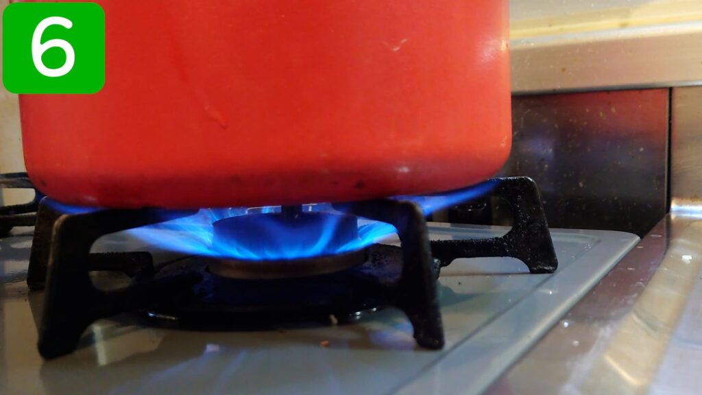 沸いたら火を弱め、具材に火を通すためにひと煮立ちさせます。