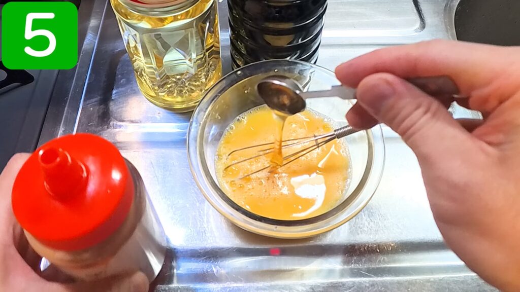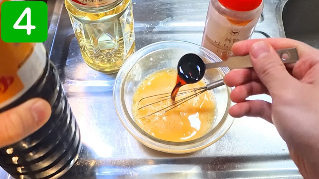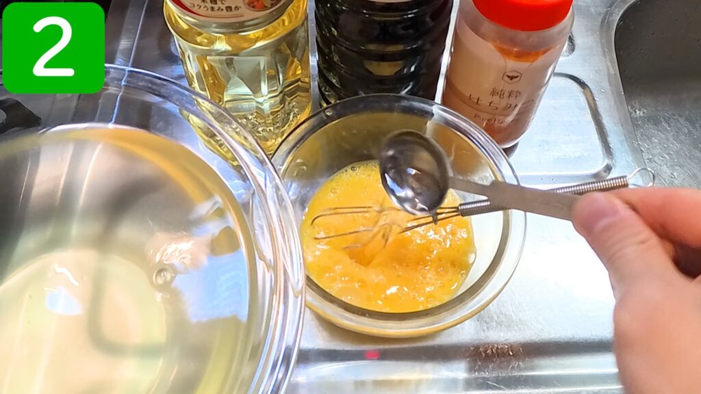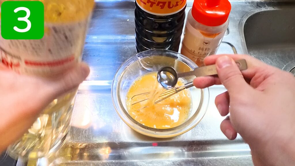先に卵を溶いておかないと調味料が混ざりにくいので注意します。