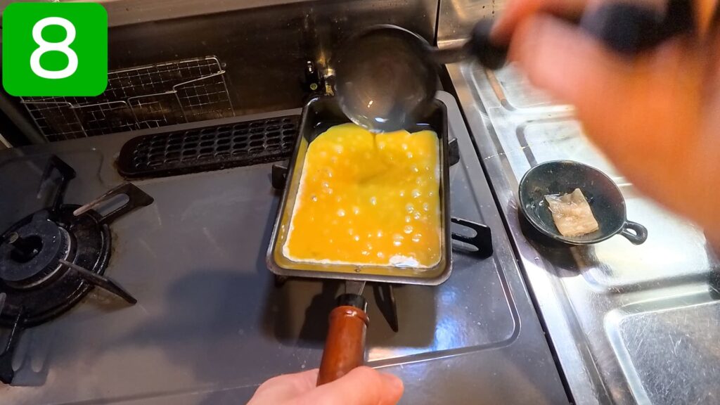 これにて、ワカサギ出汁で作る出汁巻きたまご、完成でございます。