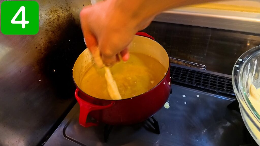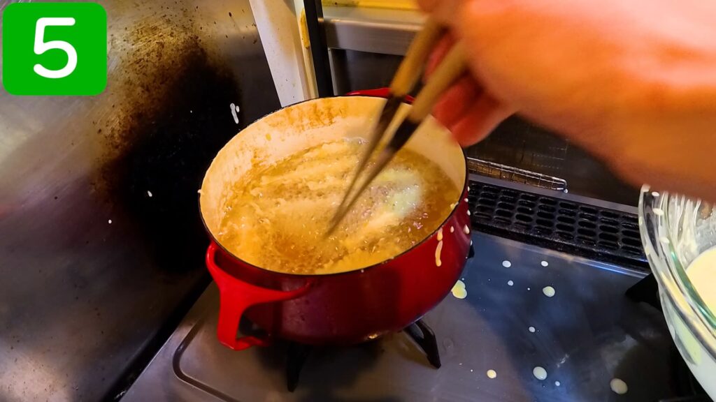 または、衣を落として油の表面で揚がるくらいの温度を目安にします。