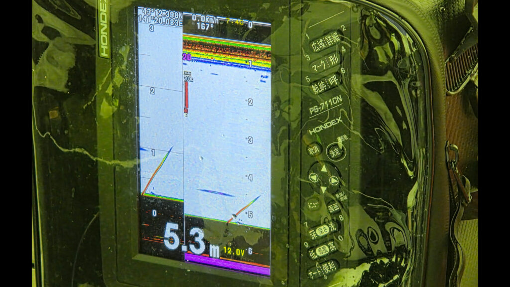 当日の水深は5.4m、朝は魚探に反応はあるも渋かった模様。