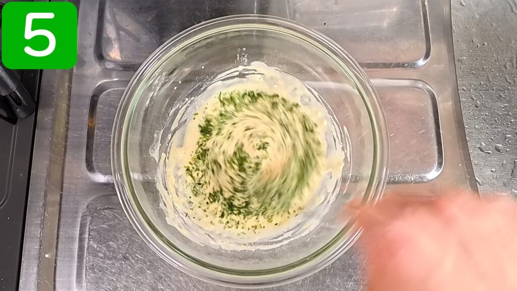 4で作った天ぷら衣に分量の青のりを入れ、よく混ぜておきます。