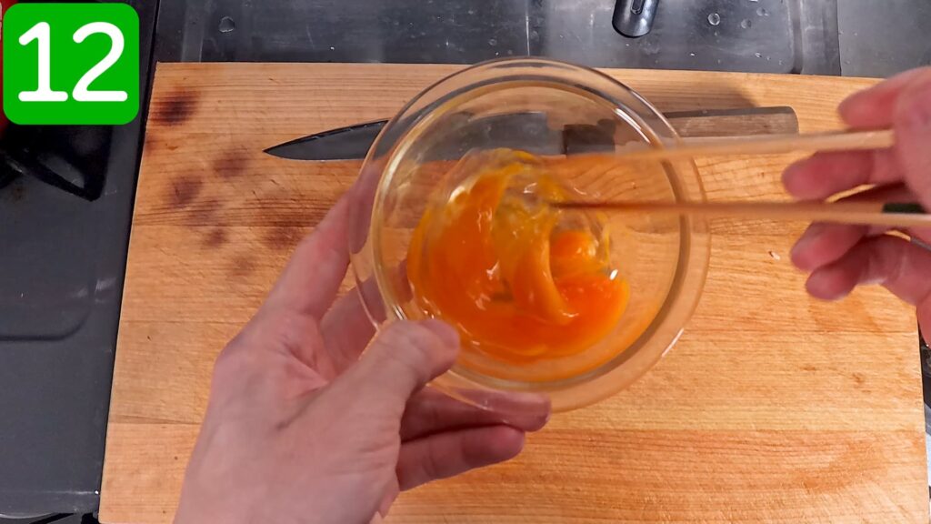卵を溶いておきます。