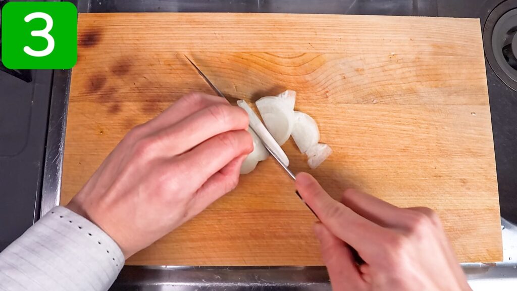 玉ねぎをスライスしておきます。