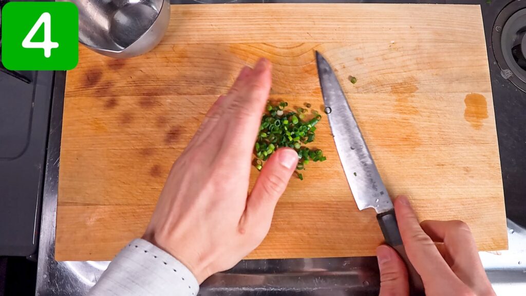 これは盛り付けた際にあしらうためのものなので、三つ葉や白髪ねぎなど、お好みで変更してみてください。