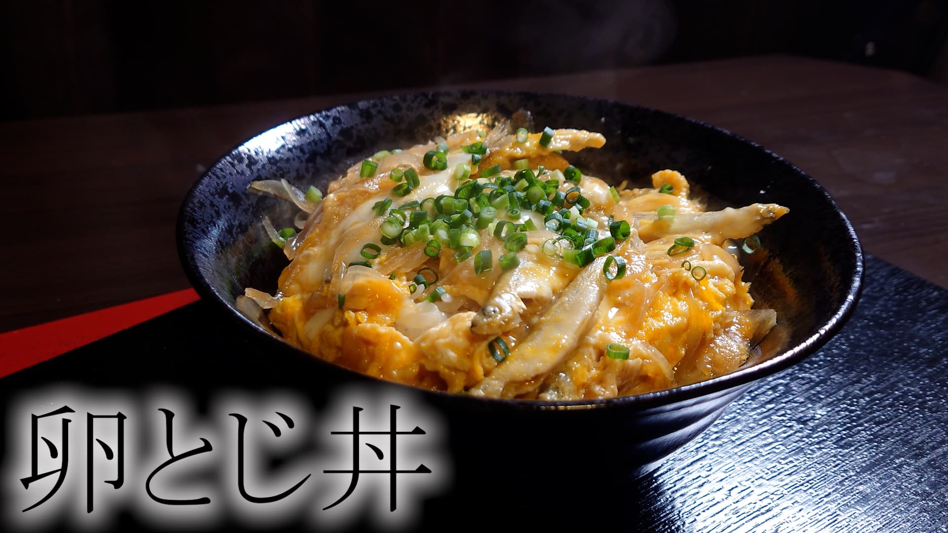 これにてワカサギの卵とじ丼、完成でございます。