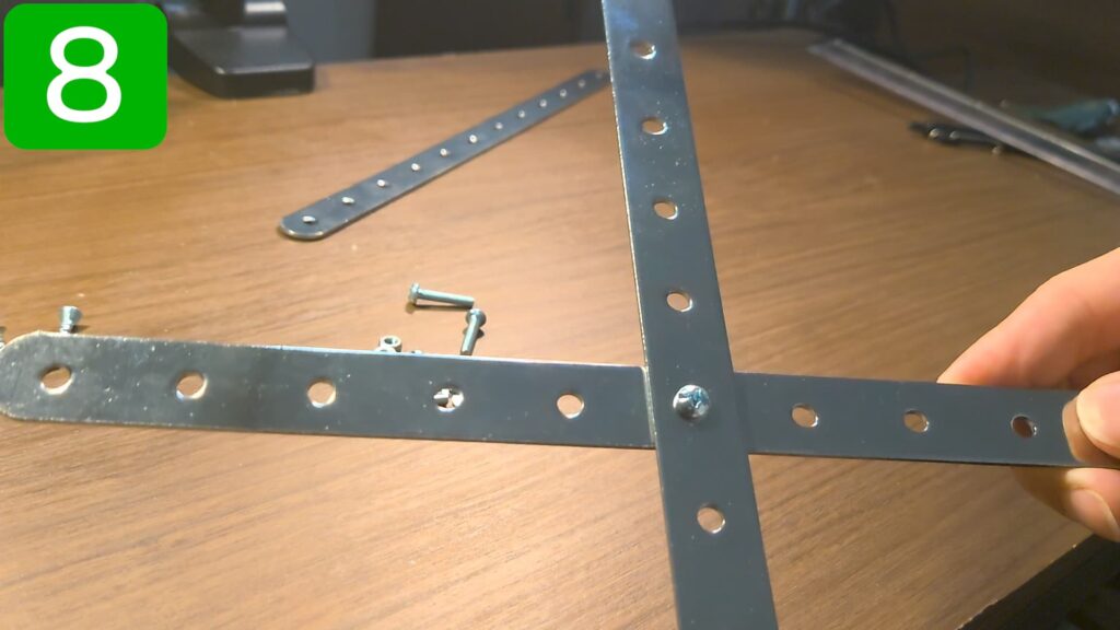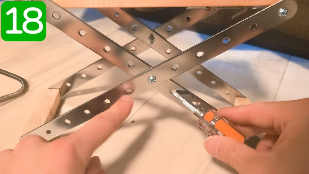 手順8でクロスした金具の、外側の金具の天板側に、ボルトが内側に飛び出るように取り付けます。
