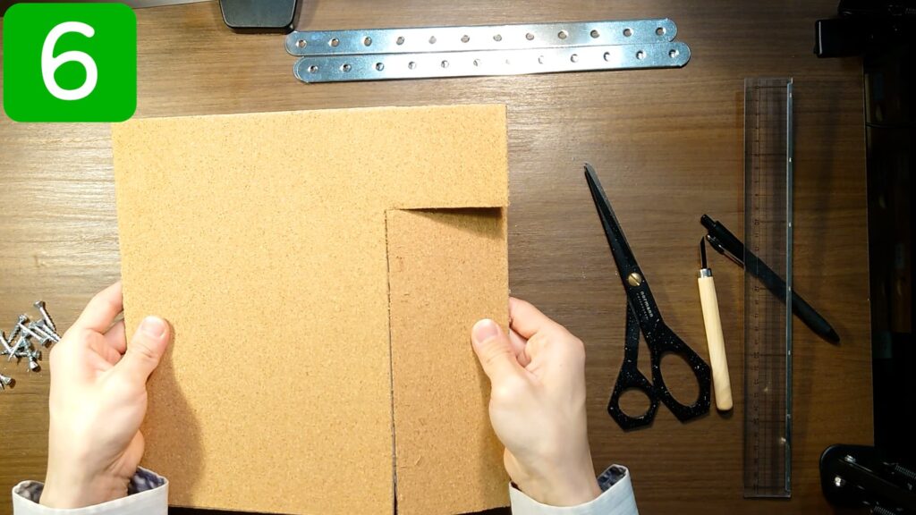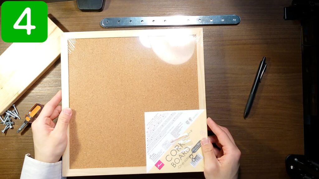 コルクボードを、天板の天面より一回り小さいサイズに切り取ります。