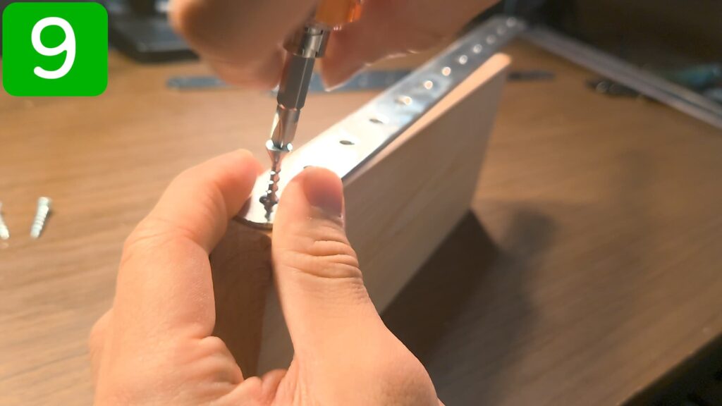 穴をあけた場所に、取付金具をビスで留めていきます。