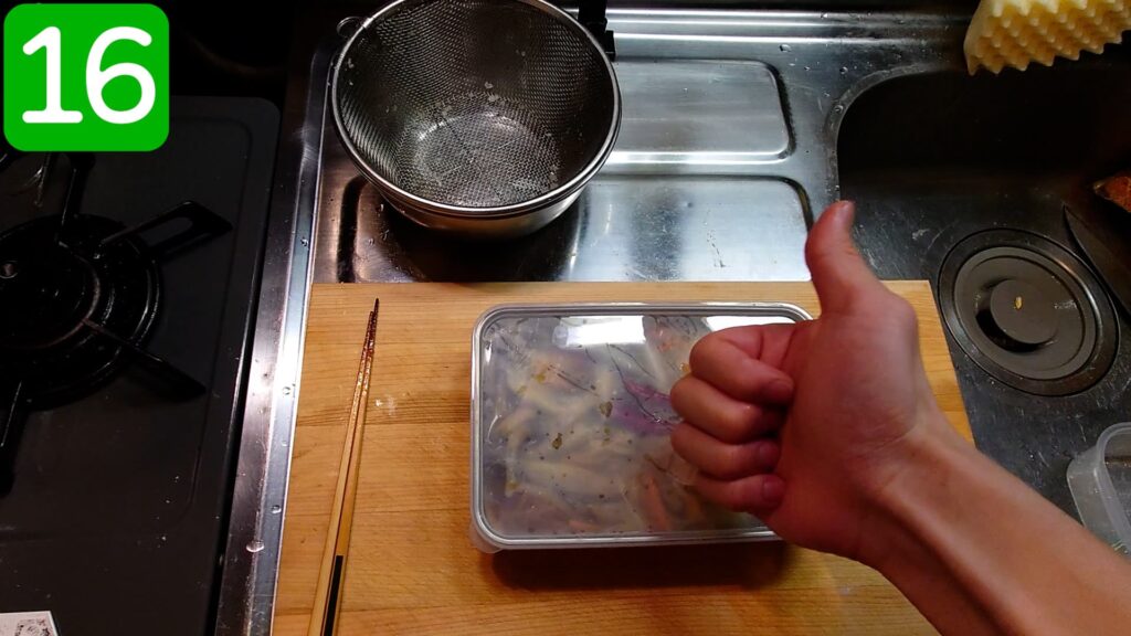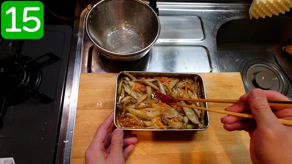 これにて、「ワカサギの南蛮漬け」完成でございます。