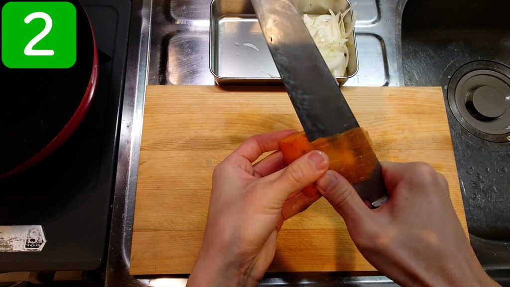 玉ねぎ、人参は生のままでもOKですが、個人的には炒めた方が好きです。
