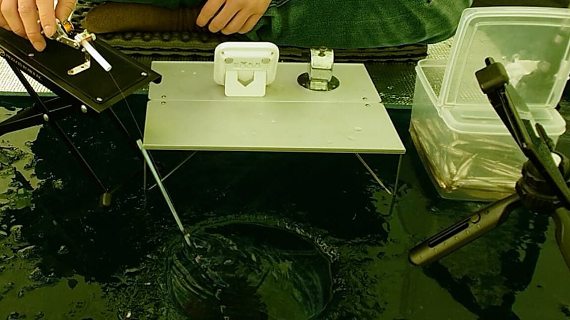 綺麗な水に穂先を落としつつ、順調に釣りあげています。