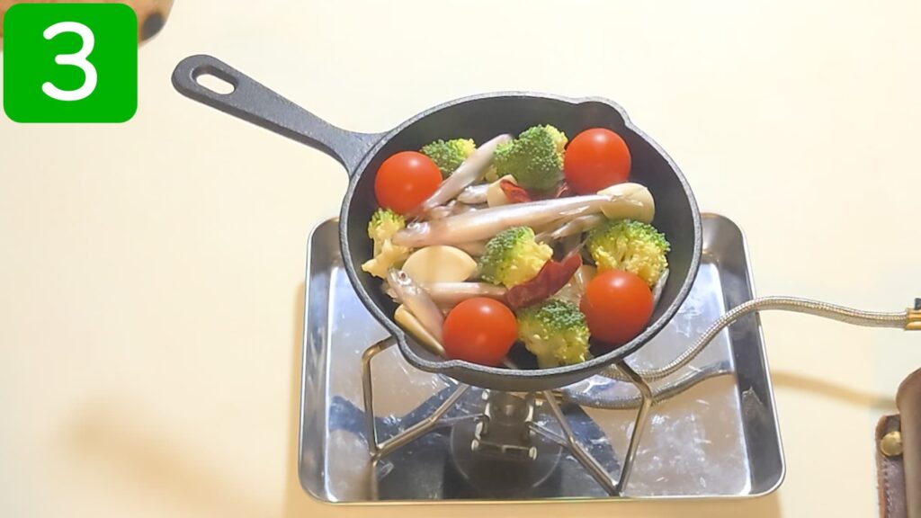 全てオリーブオイルで煮るだけなので、具材を入れる順番は気にしなくてOKです。