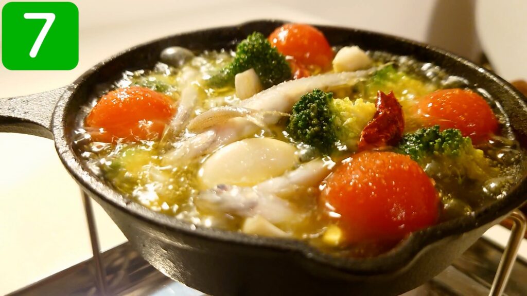 これにて、「ワカサギのアヒージョ」完成でございます。