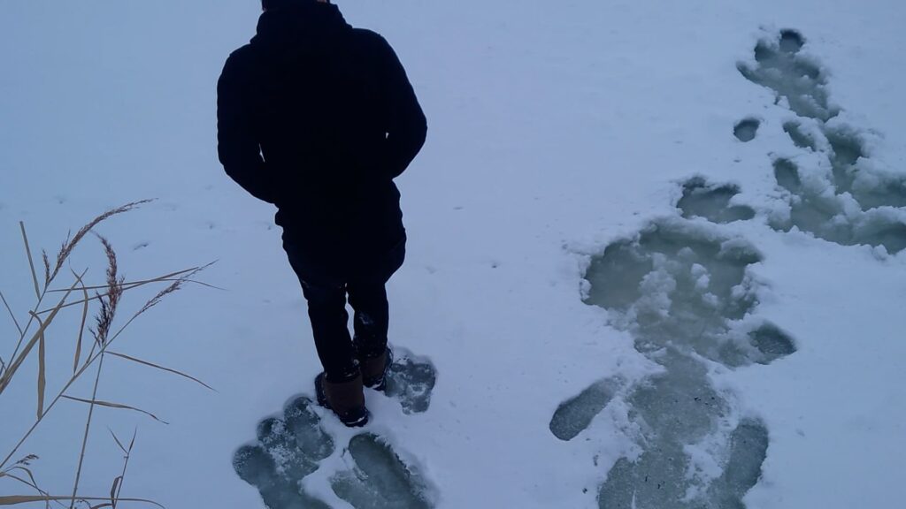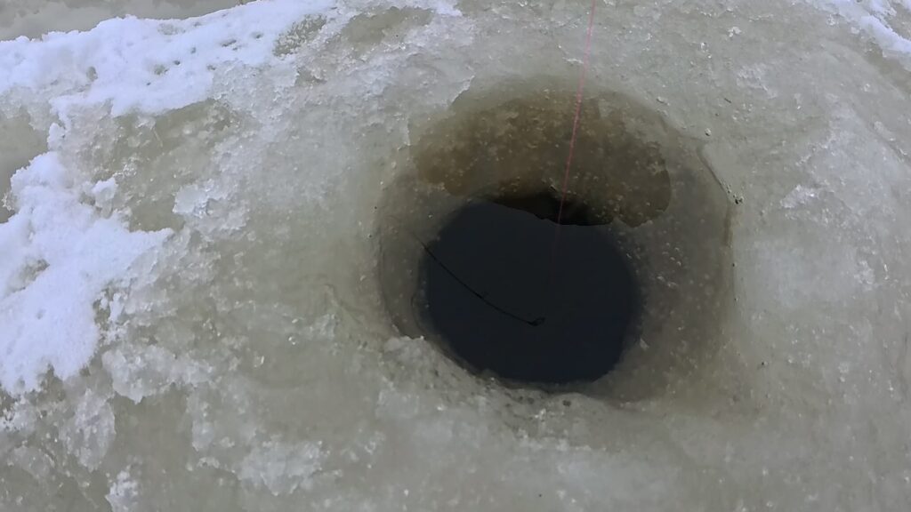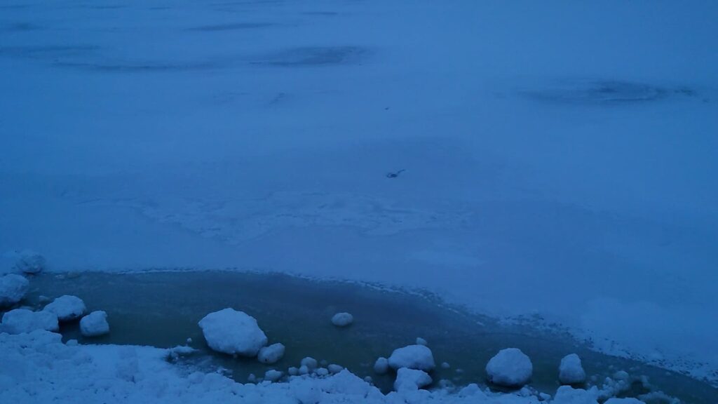 ここは管理釣り場ではないので自己責任ですが、安全に十分に配慮して氷上へ上がるようにしましょう。