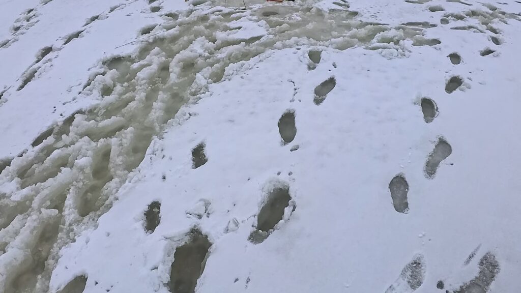 朝はこの状態で凍ってますが、日中はこれが溶けてずぼずぼです。